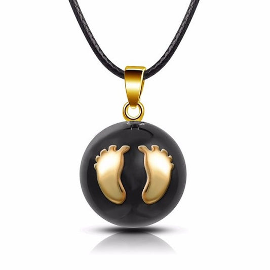 Zwangerschapsbelletje met babyvoetjes en bolletjesketting